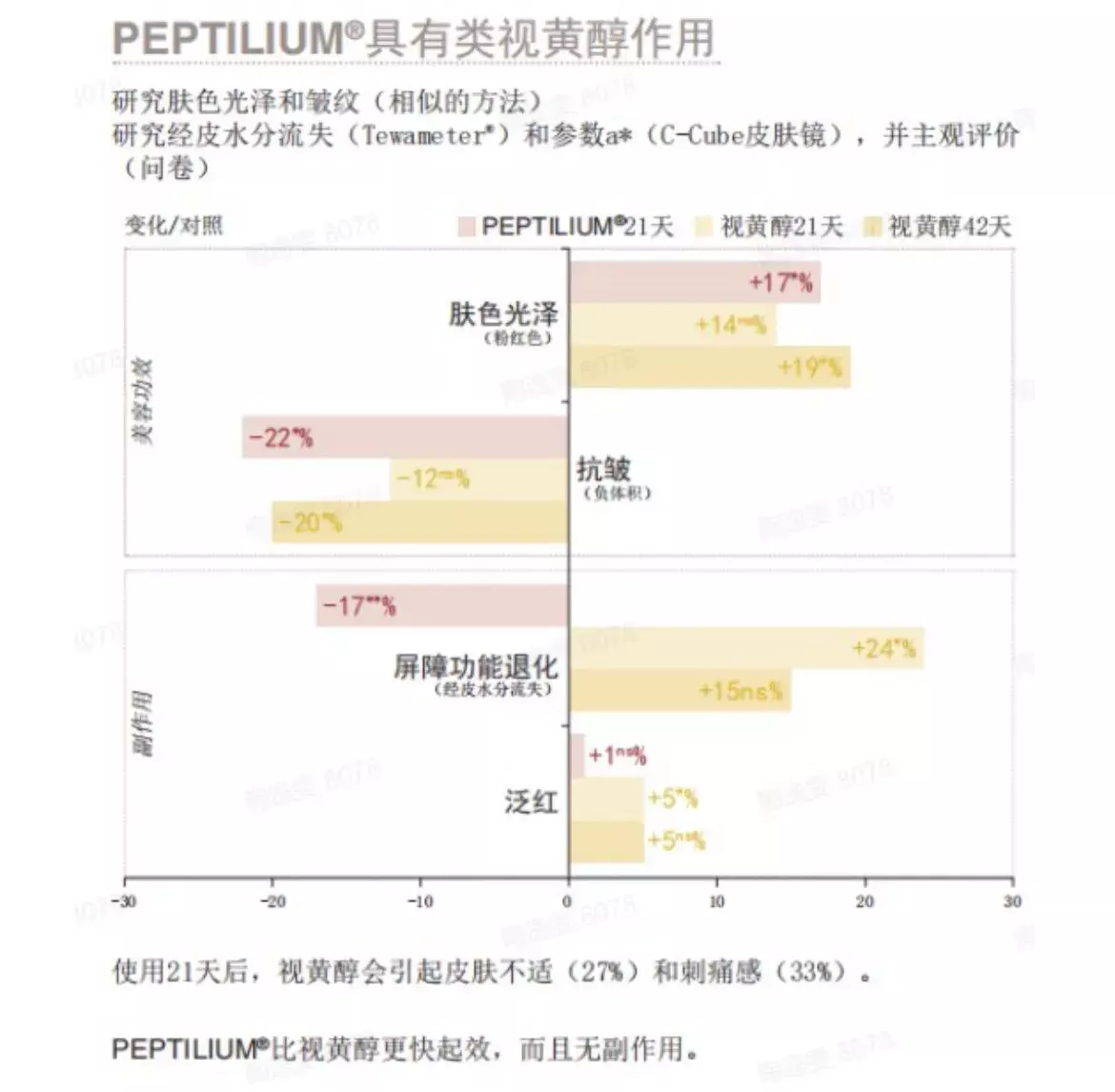 与视黄醇相比 PEPTILIUM®具有更强、更快的功效,同时无副作用